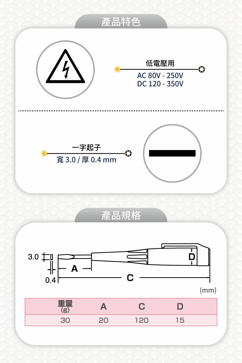 • 用於檢測電線或插座有無電流