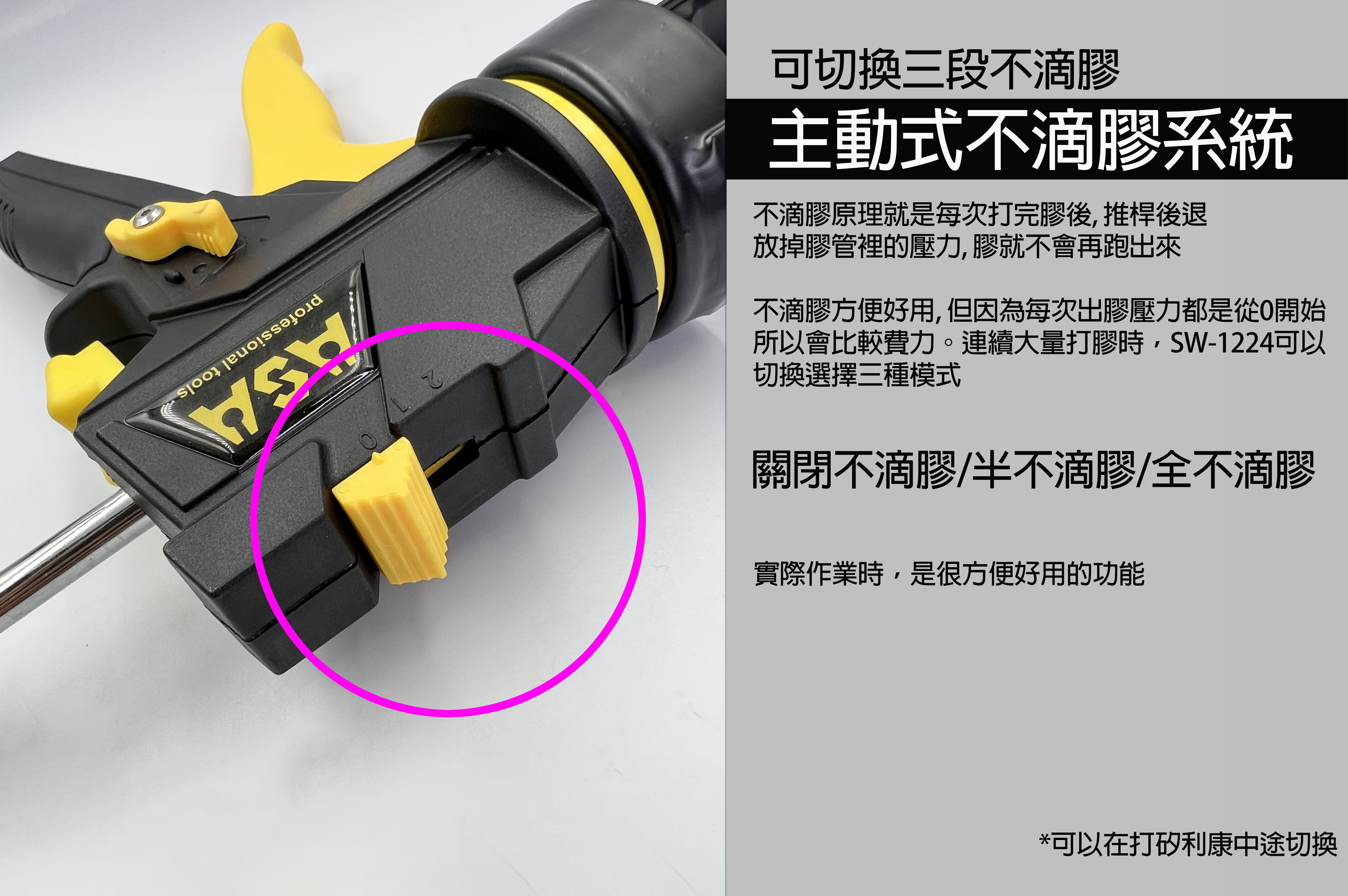 • 主動式不滴膠系統