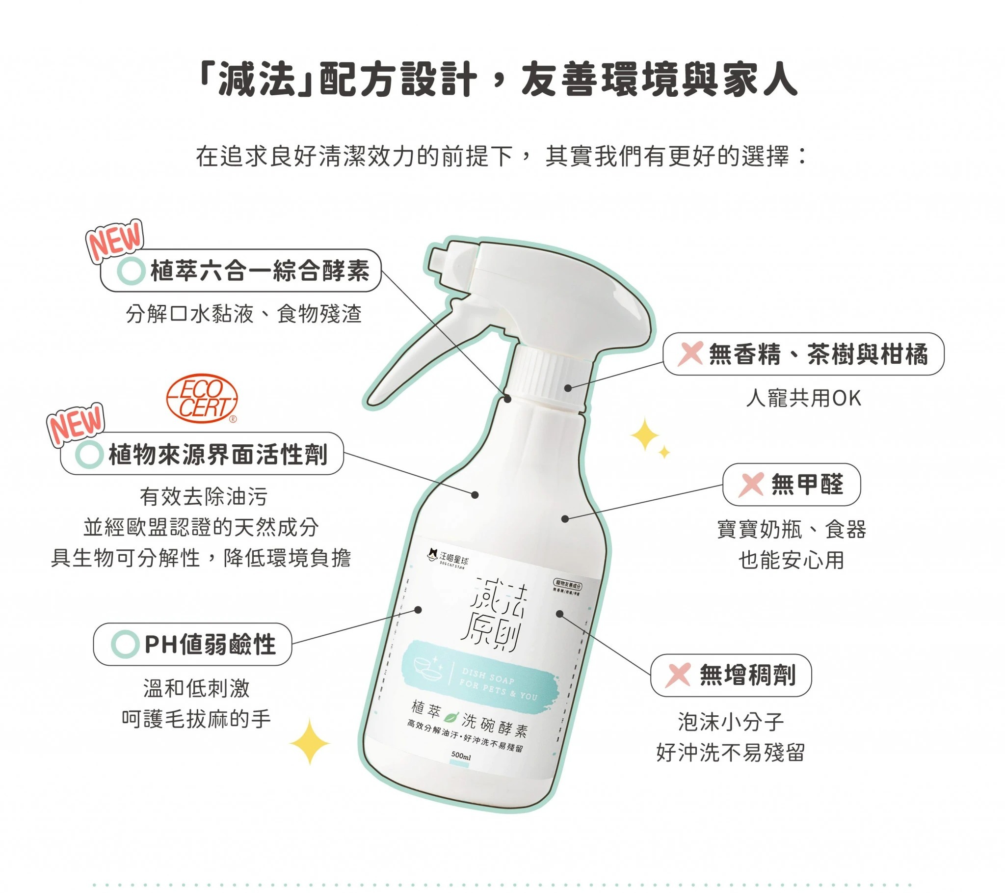 • 六合一綜合酵素+ ECOCERT 認證環保原料