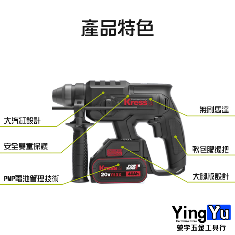 卡勝KRESS|KU390 無刷鋰電三用槌鑽(2.0J)