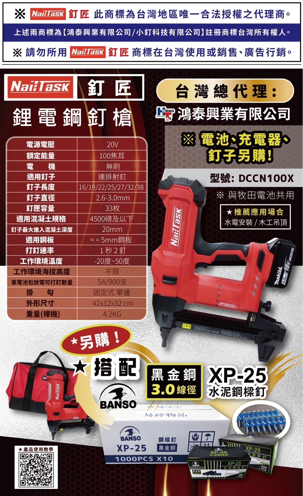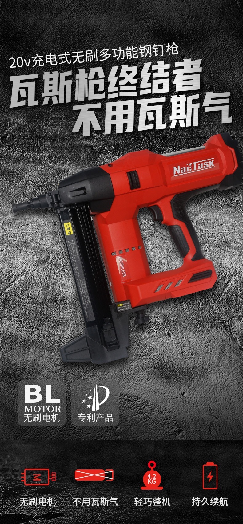 • 無碳刷馬達可達100焦耳