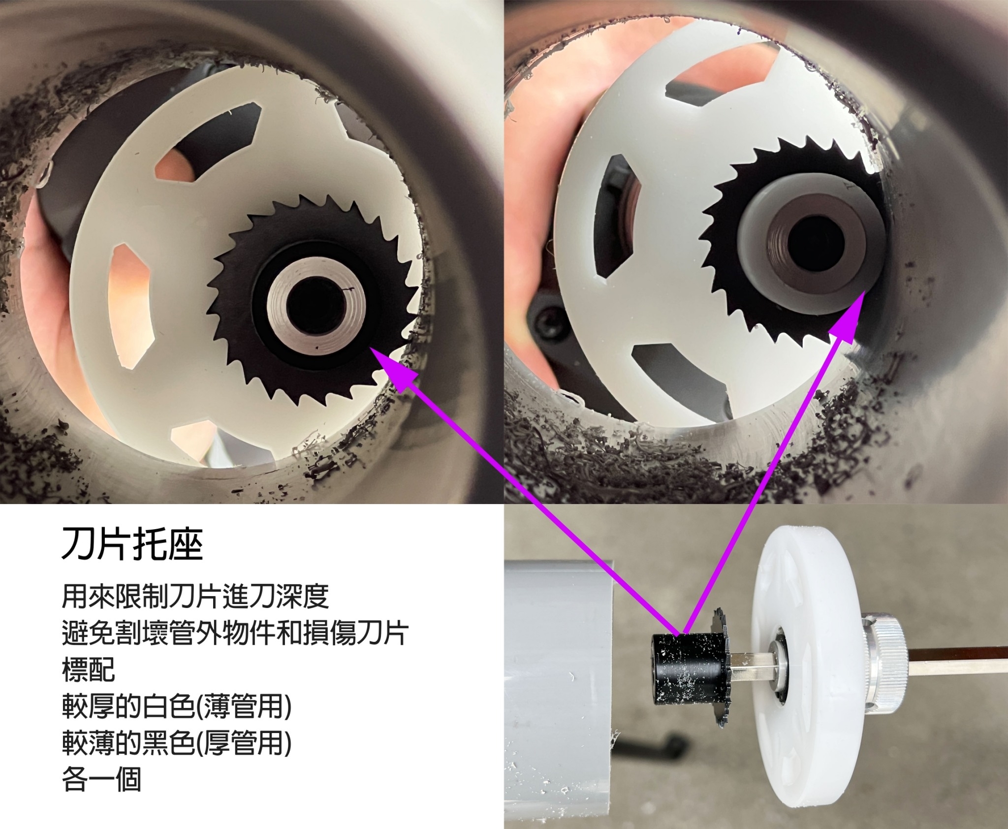 • 薄、厚管鋸片托座可更換