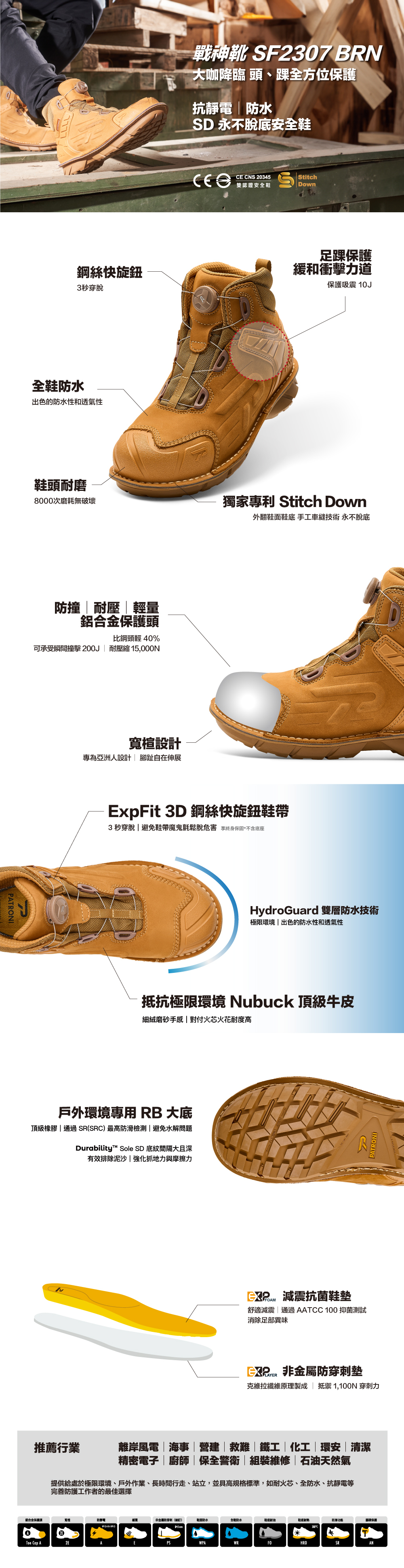 【PATRONI】SF2307BRN SD防水快旋鈕抗靜電安全鞋