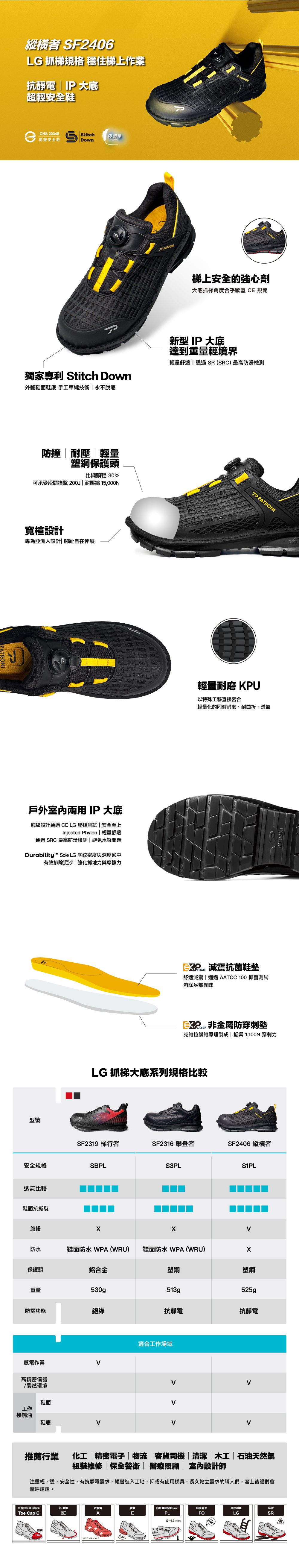 鞋底耐油 FO ∣ 抓梯 LG ∣ 抗靜電 A