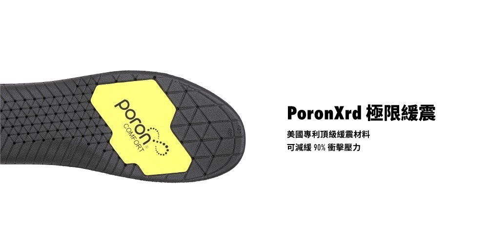 • 極致緩震,PoronXrd 高達 90% 緩震衝擊