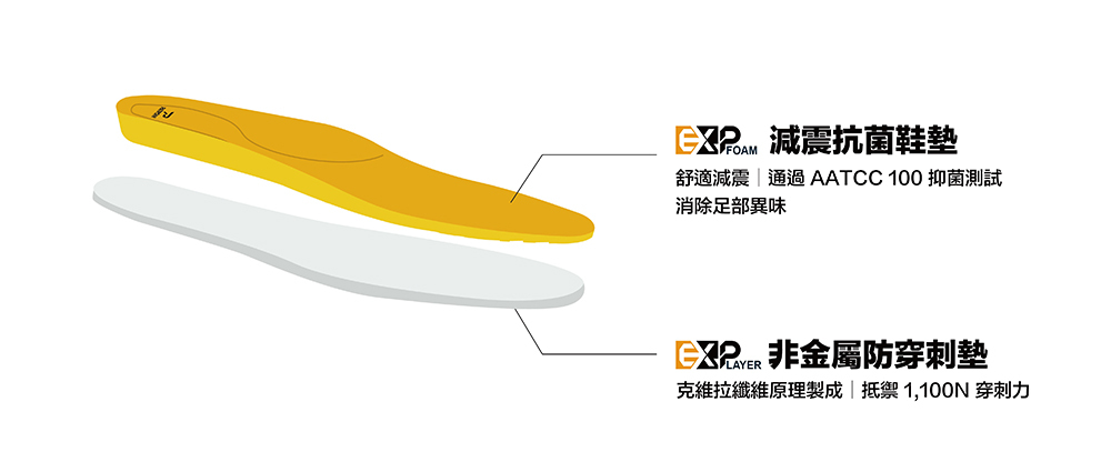 • 非金屬防穿刺墊可抗 1,100N 穿刺力