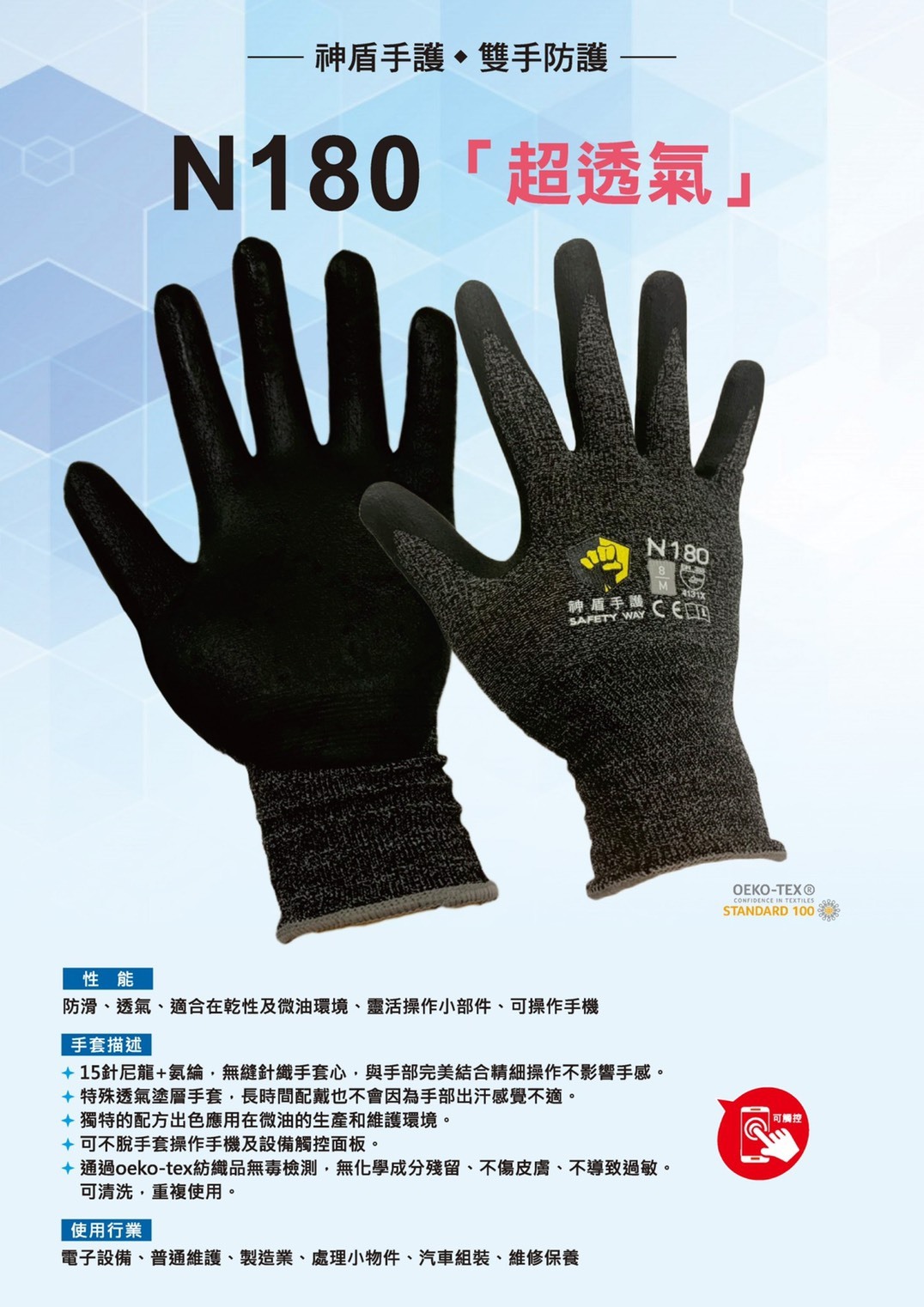 材質:尼龍絲加彈性纖維、無縫針織手套心、人造膠塗層