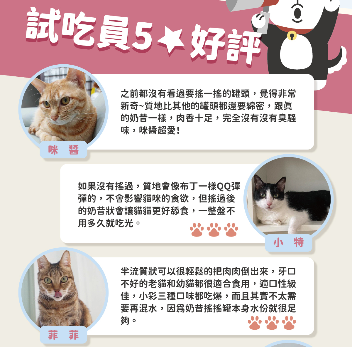 • 通過適口性測試,92%貓貓都愛的『奶昔質地』