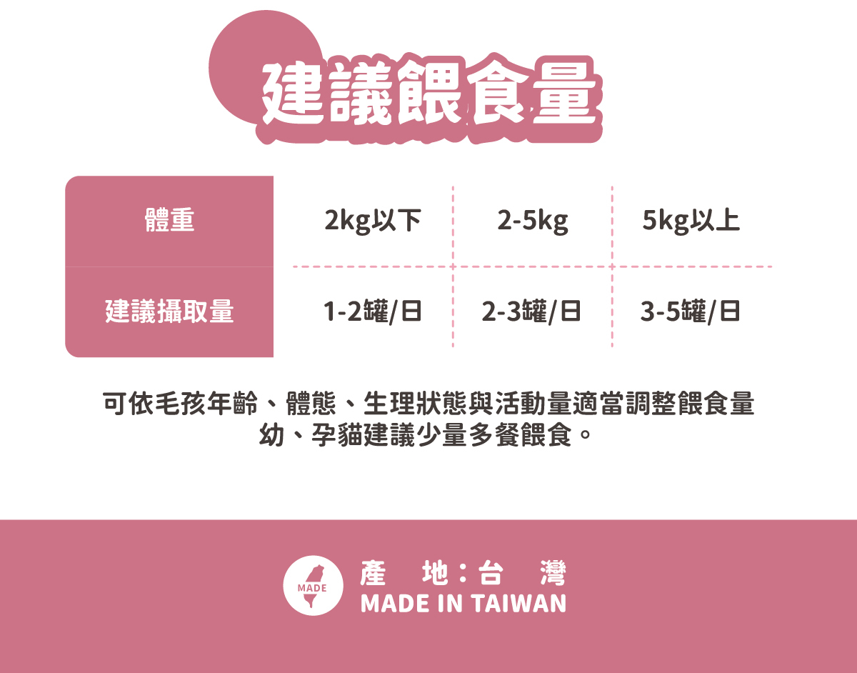 • 符合AAFCO&NRC建議之營養標準,適合全齡貓食用