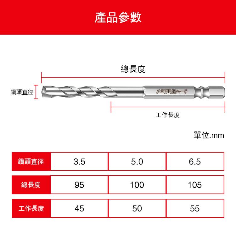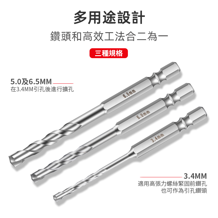 3.4mm:適用高張力螺絲緊固前鑽孔,也可作為引孔鑽頭