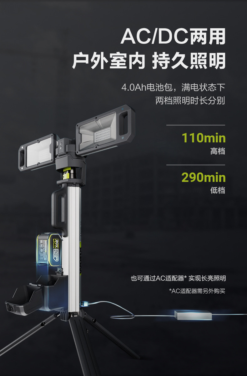 • 最大續航力可達290min