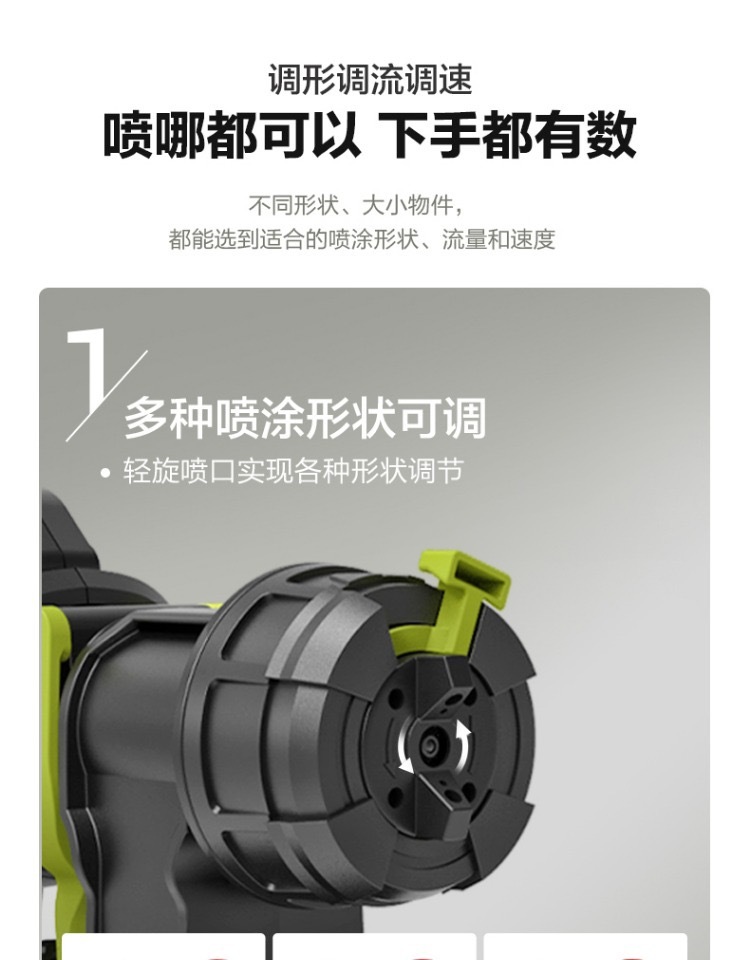 • 輕旋噴口即可調節多種噴塗形狀