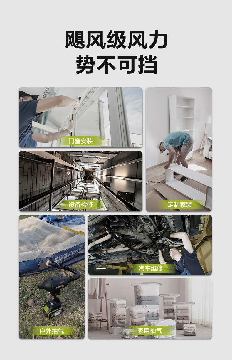 • 無刷渦輪大風量