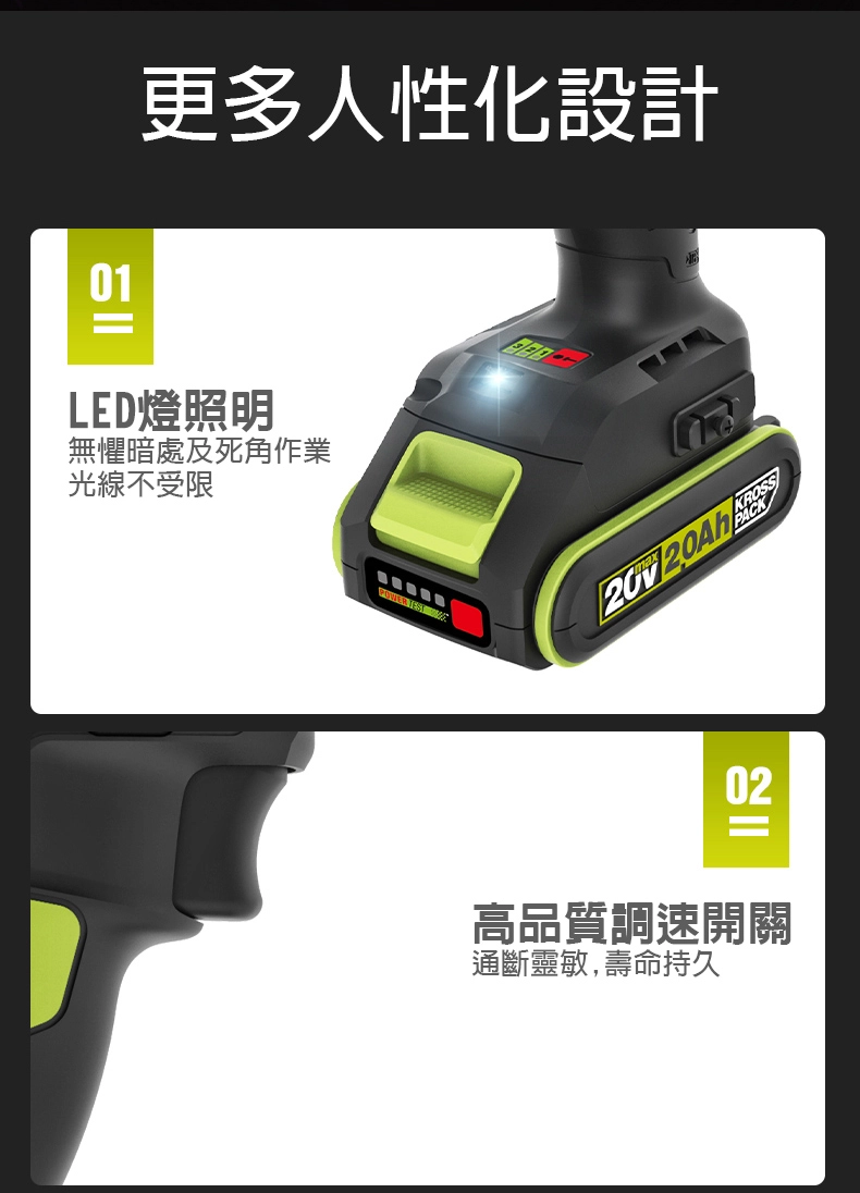 電池容量:2.0Ah/4.0Ah (依選擇的配置而定)
