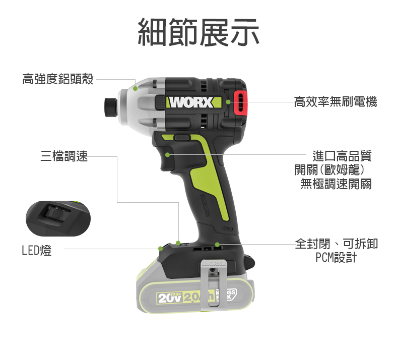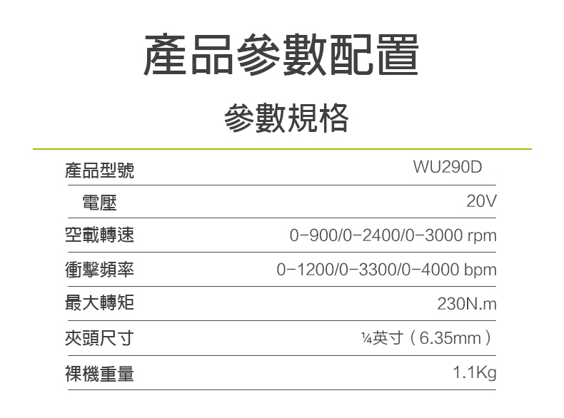 威克士|WU290D 鋰電無刷衝擊起子(230Nm)
