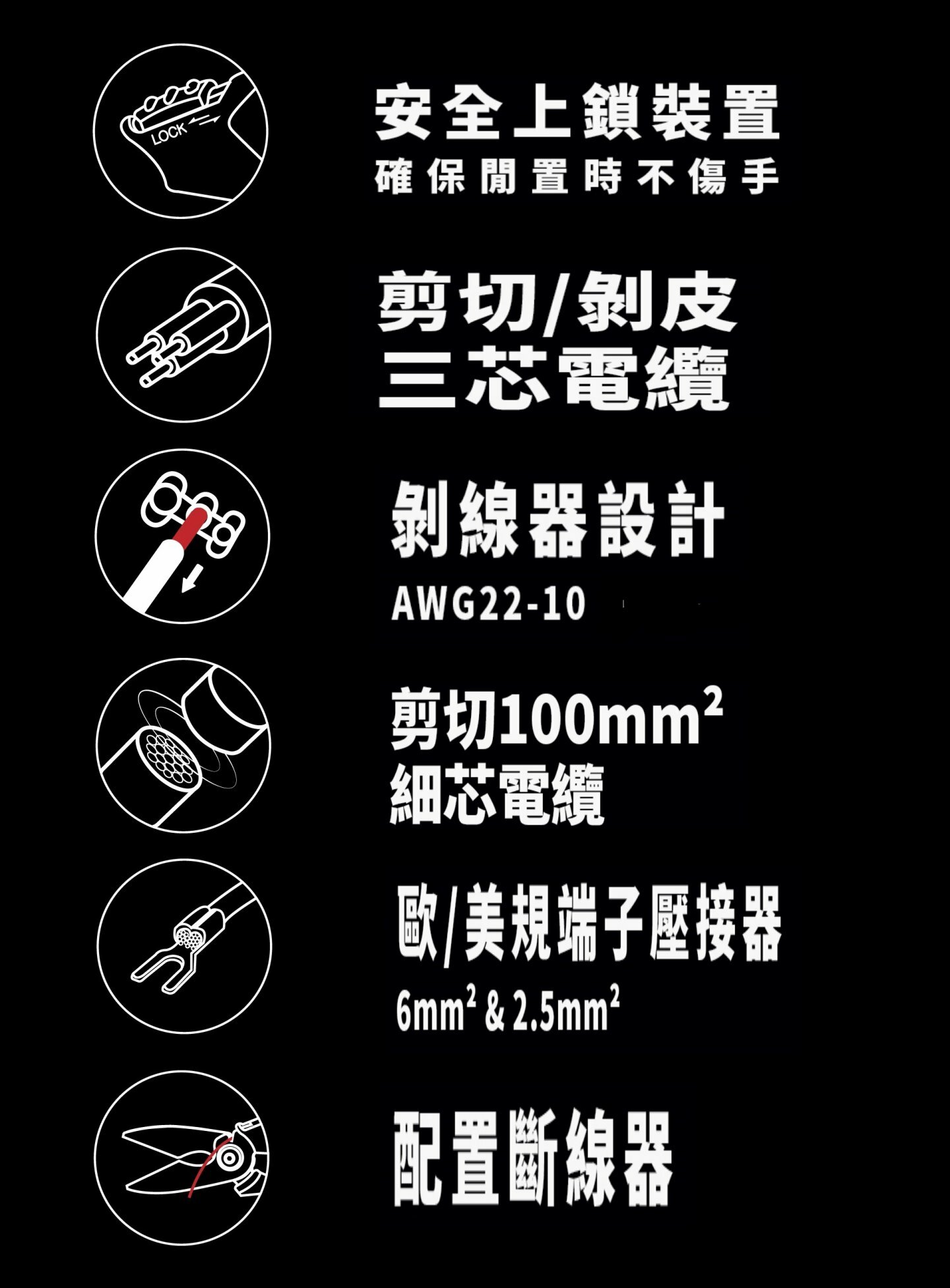 • 業界最強剪切力;可剪切100mm² 細芯電纜