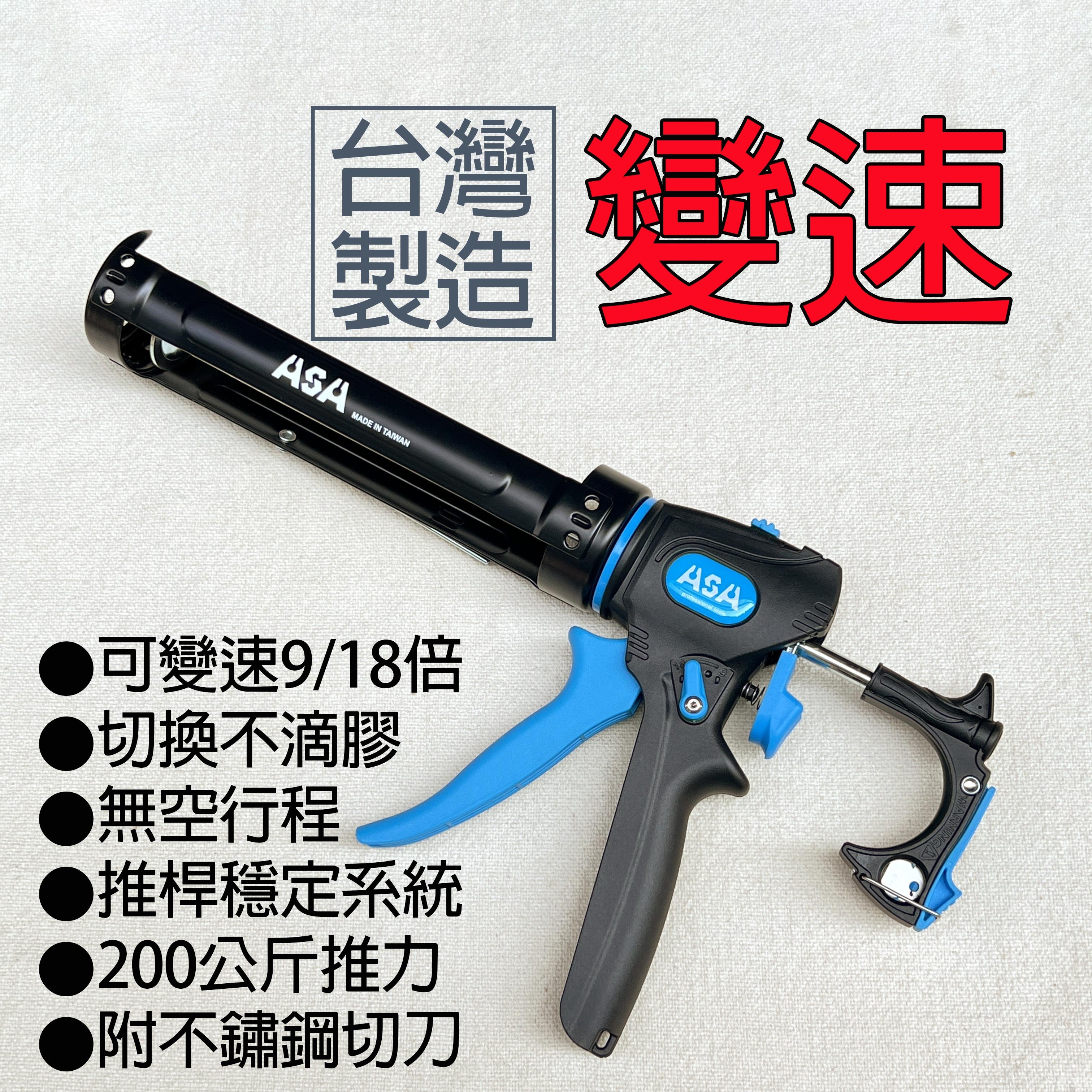18倍槓桿/5mm出膠行程,省力模式
