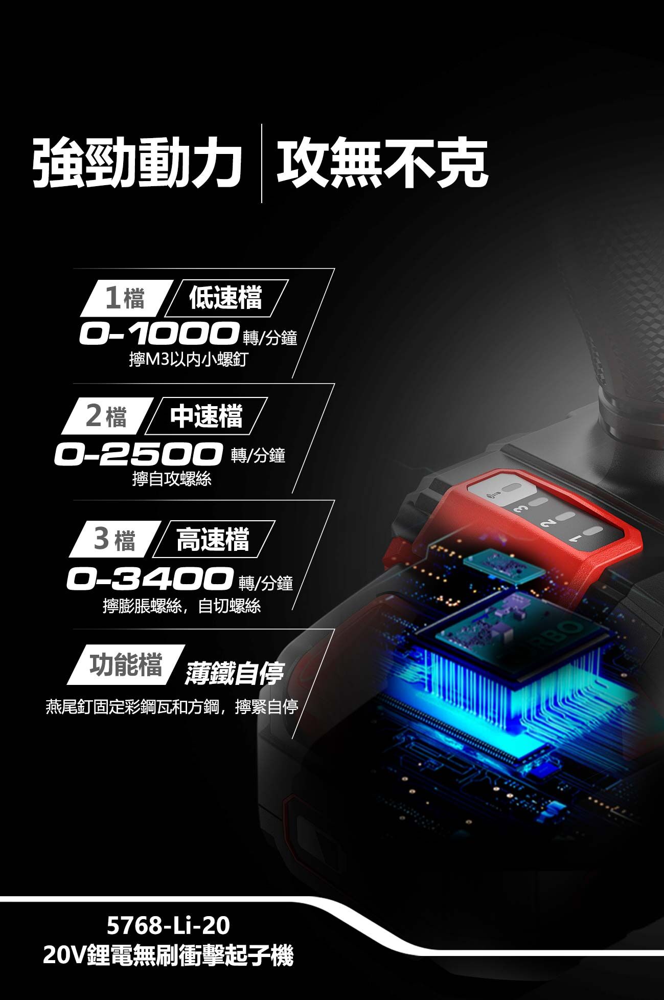 • 3段轉速+1薄鐵自停