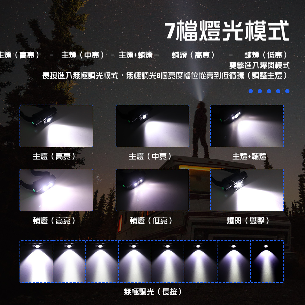 • 七種燈光模式