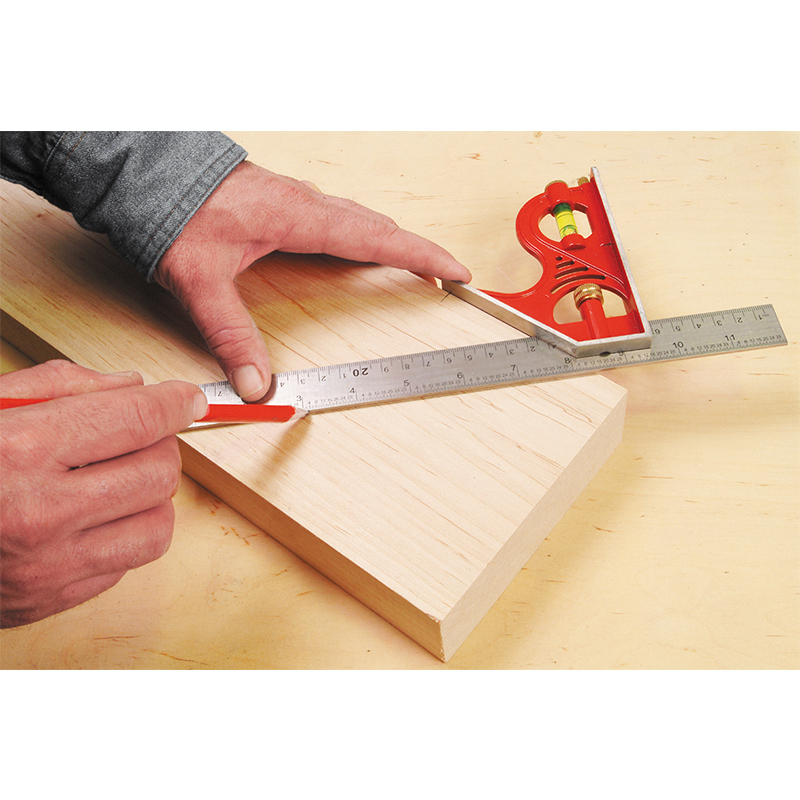 • 帶有永久蝕刻標尺標記的不銹鋼尺面(英寸和厘米)