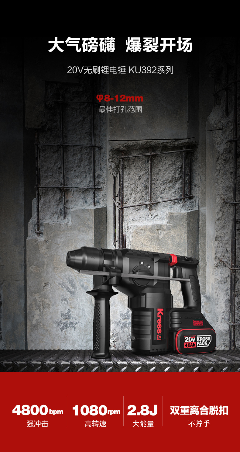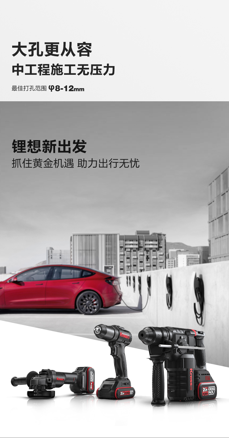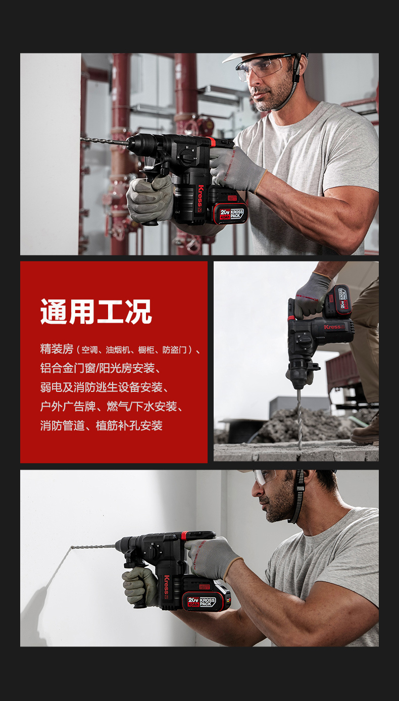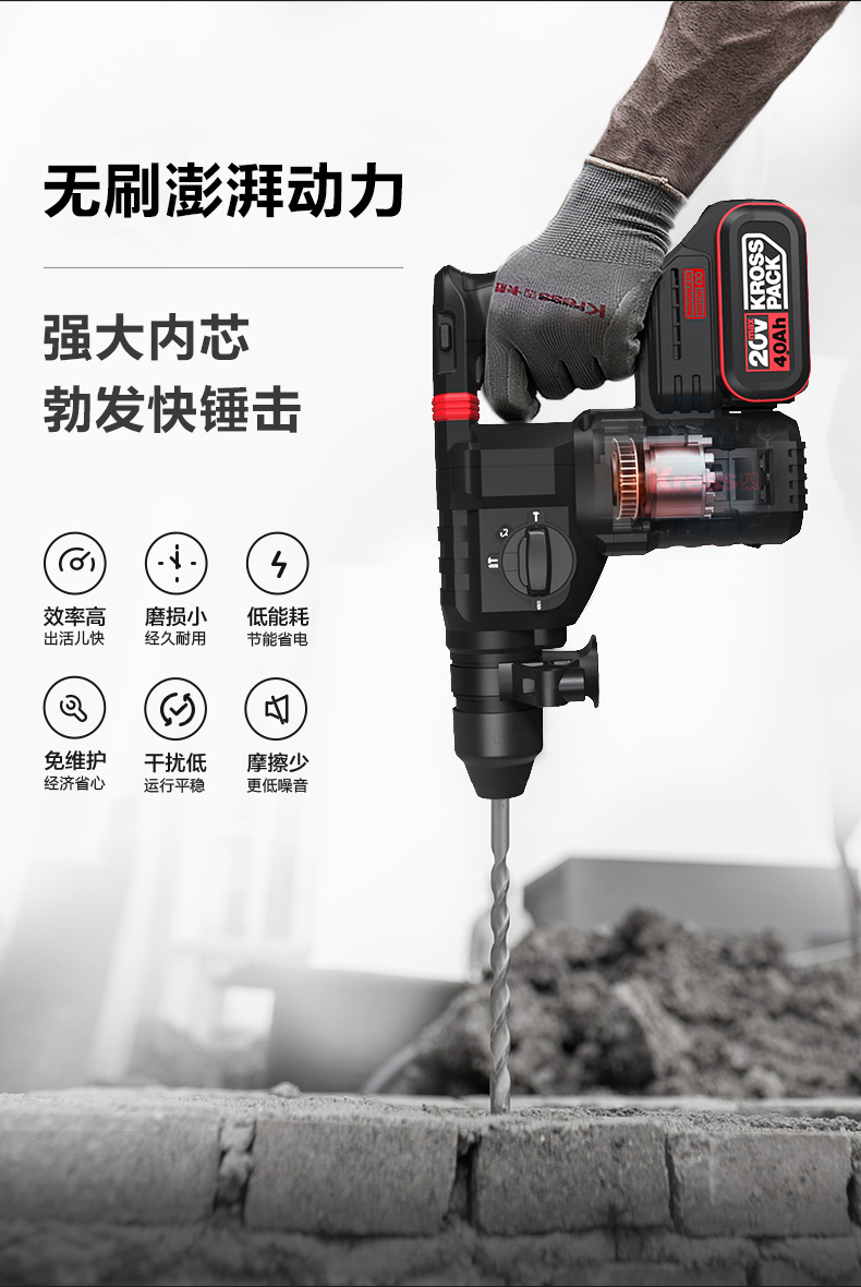 • 四功合一(電鑽、槌鑽、槌擊、調整)