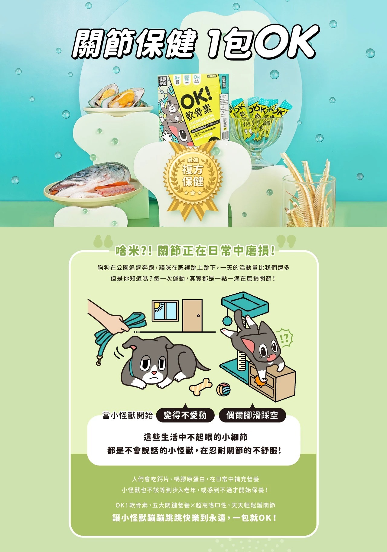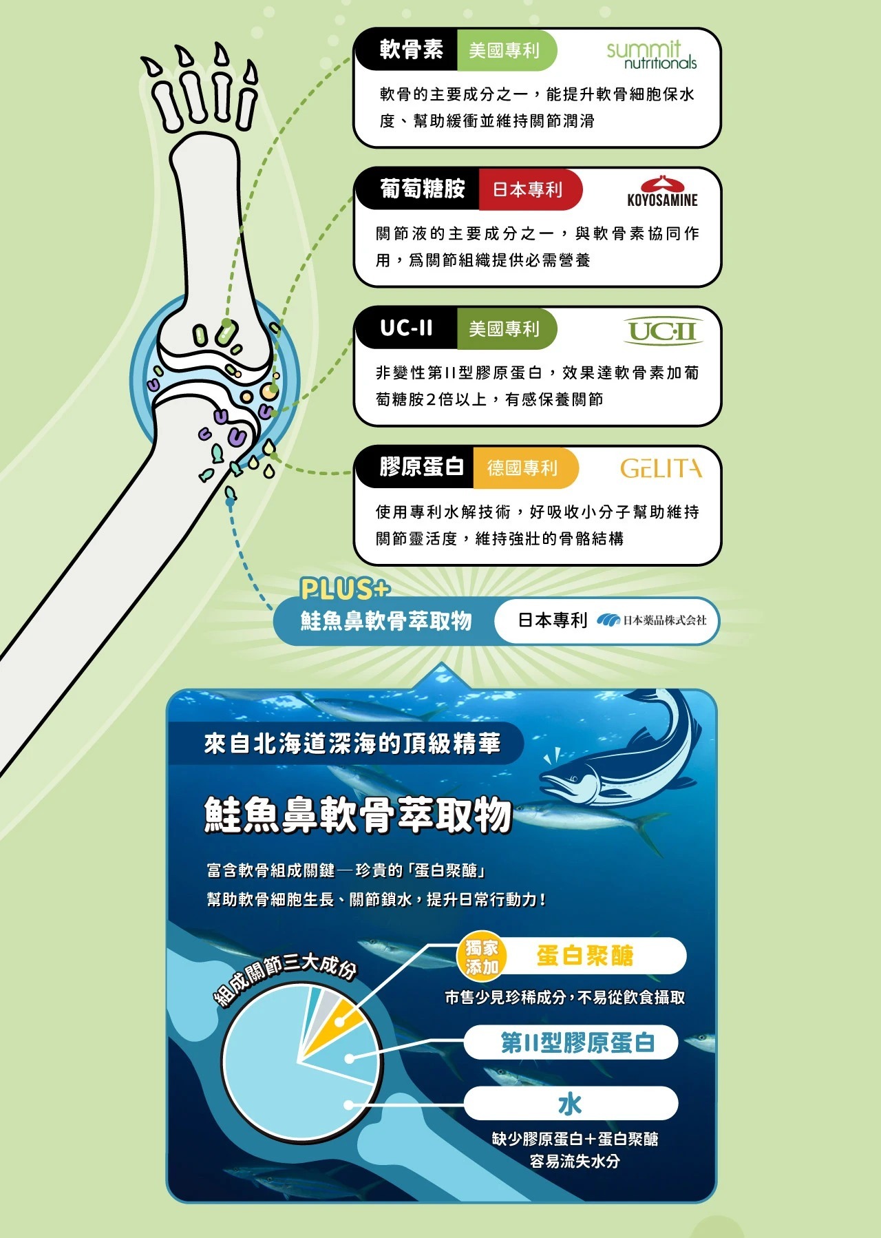 ✔軟骨素+葡萄糖胺+UC-II+膠原蛋白+蛋白聚醣關鍵五大營養讓關節保健,一包OK!
