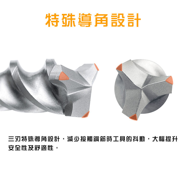 • 特殊導角設計,減少鋼筋接觸時工具的抖動,大幅提升安全性及舒適性。