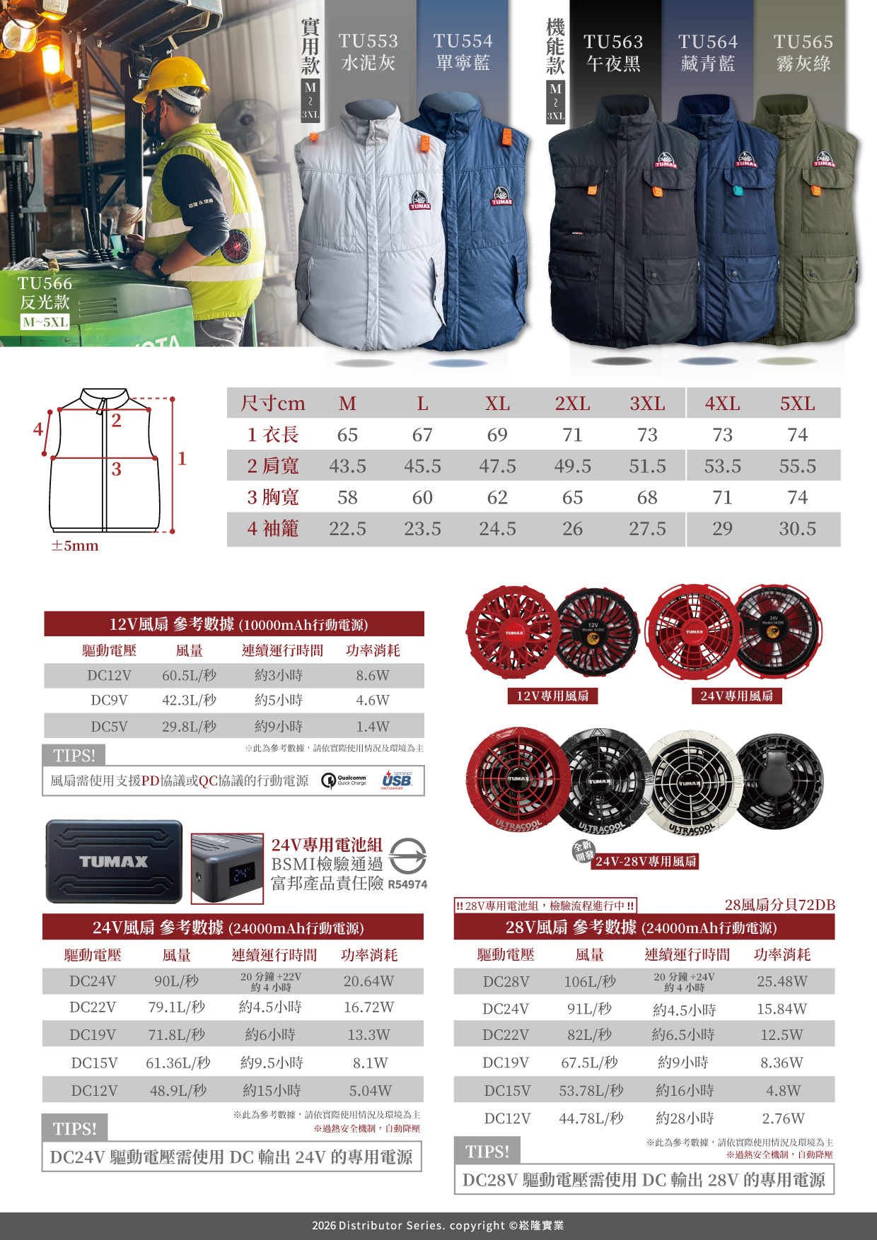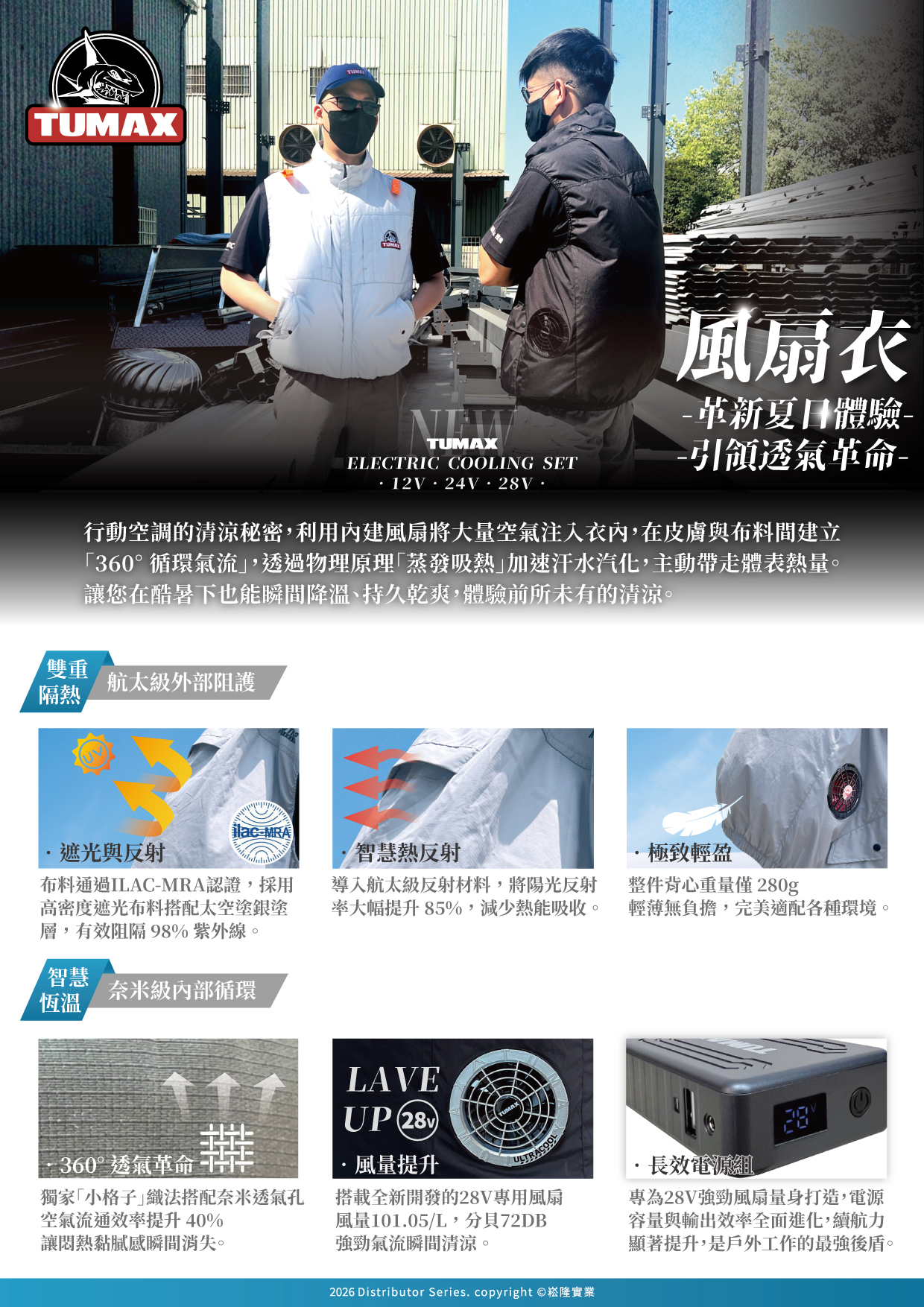 TUMAX 空調服 2026 實用款|28V 無袖 背心 機能款 風扇衣