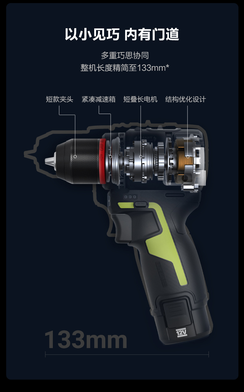 • 133mm超短軸設計