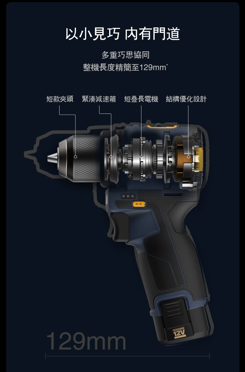 • 133mm超短軸設計