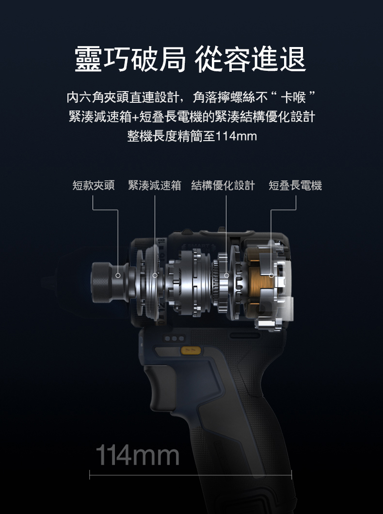 • 133mm超短軸設計