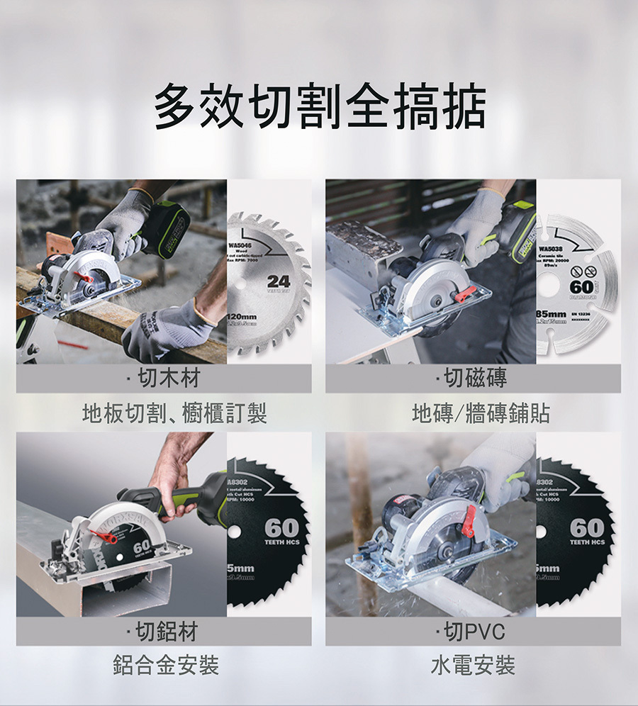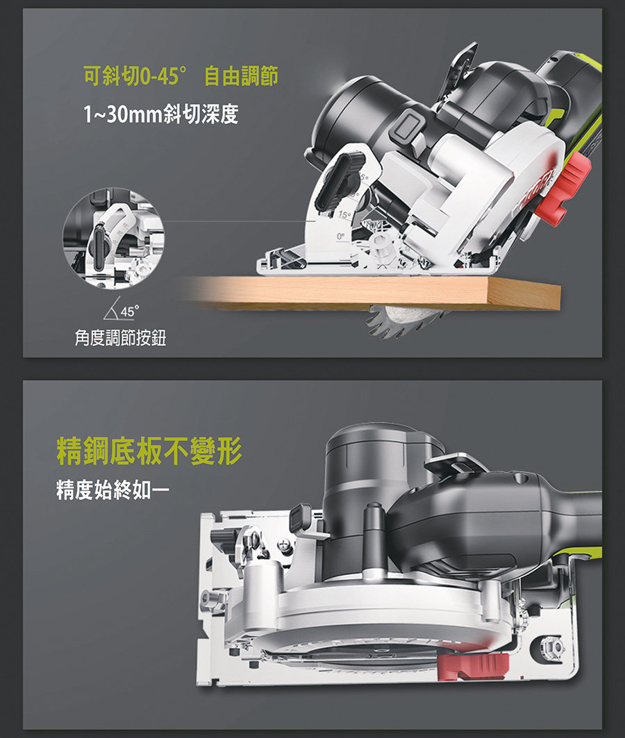 • 最大切深(120mm鋸片):