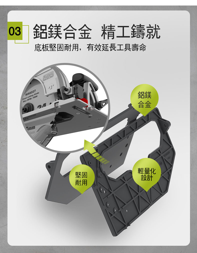 • 鋁鎂合金底板堅固耐用